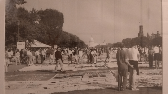 The photo shows a gay couple in the foreground of the AIDS quilt with the Capital Building in the background. From the moment I first saw it, as a senior in high school in 1997, it thrummed with trauma and triumphant, hopeful love. It’s the kind of moment that my cousin, Miguel, has captured throughout his art career. I love him for it, and I loved receiving this framed print as a graduation present.